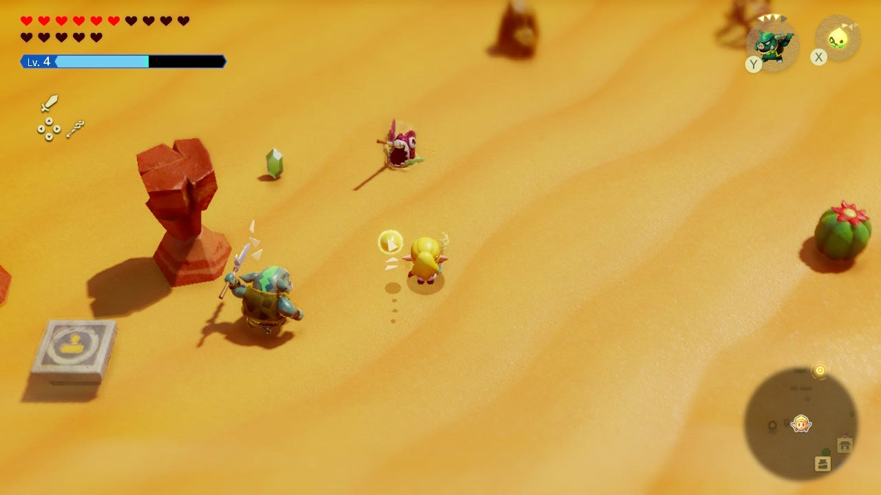The gameplay of Echoes of Wisdom is a real significant shift from any other Zelda game i’ve played previously. At first, you cannot directly engage with enemies. Instead you can either conjure up rocks to pick up and lob, or clone enemies themselves to fight alongside you. It’s not until later when you find Link’s sword, that you can temporarily use his power and fight with a sword and shield albeit for a limited amount of time.